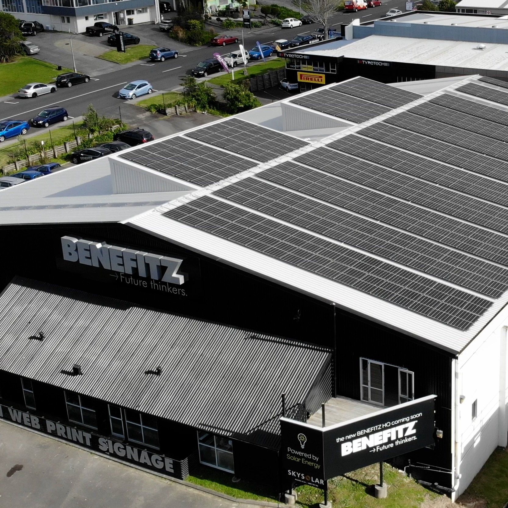 In recent years the new manufacturing plant ‘Benefitz HQ’ has been established at 5-11 Parkway Drive. This facility includes a 70-plus team with a range of print, display and signage manufacturing capabilities all under one roof and powered by solar energy.